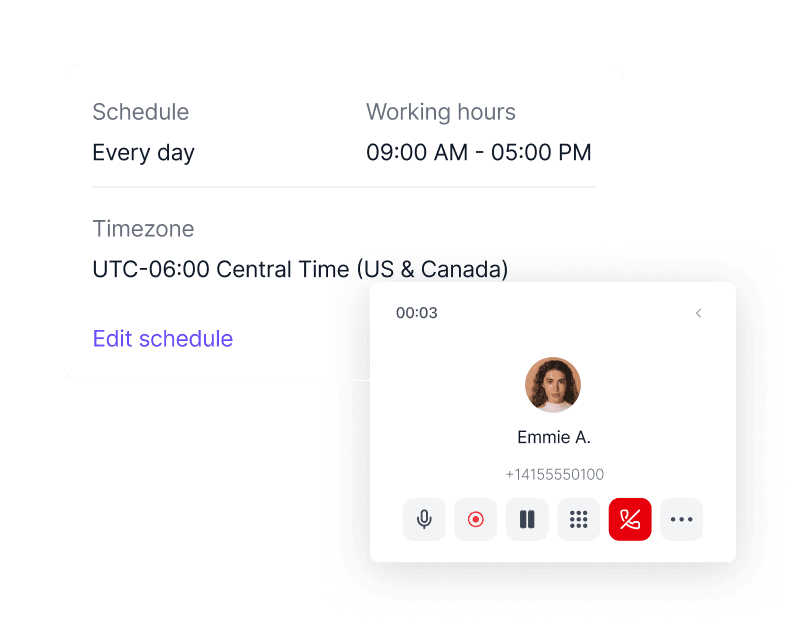 Shared numbers, working hours, and call handling keep your team organised and consistent.