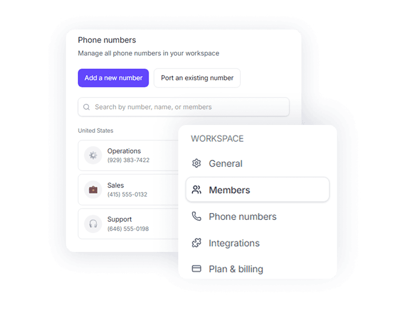 Add numbers, port existing lines, and manage teammates, all from one dashboard.